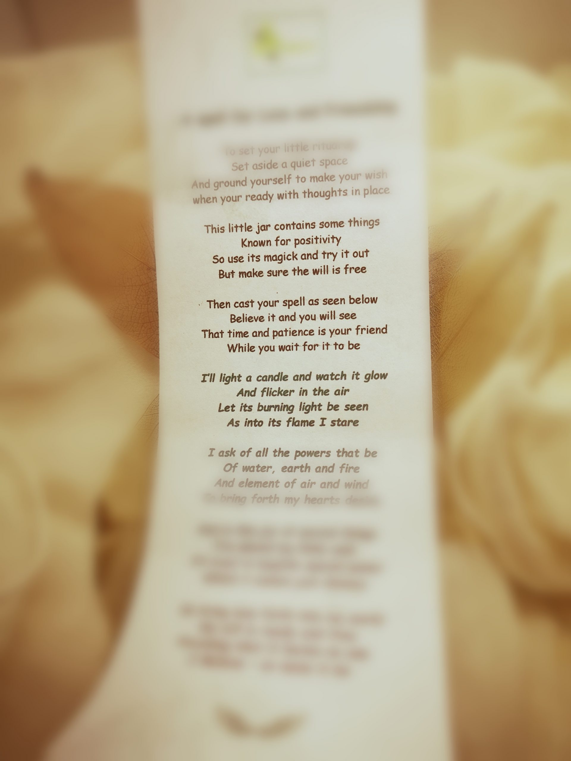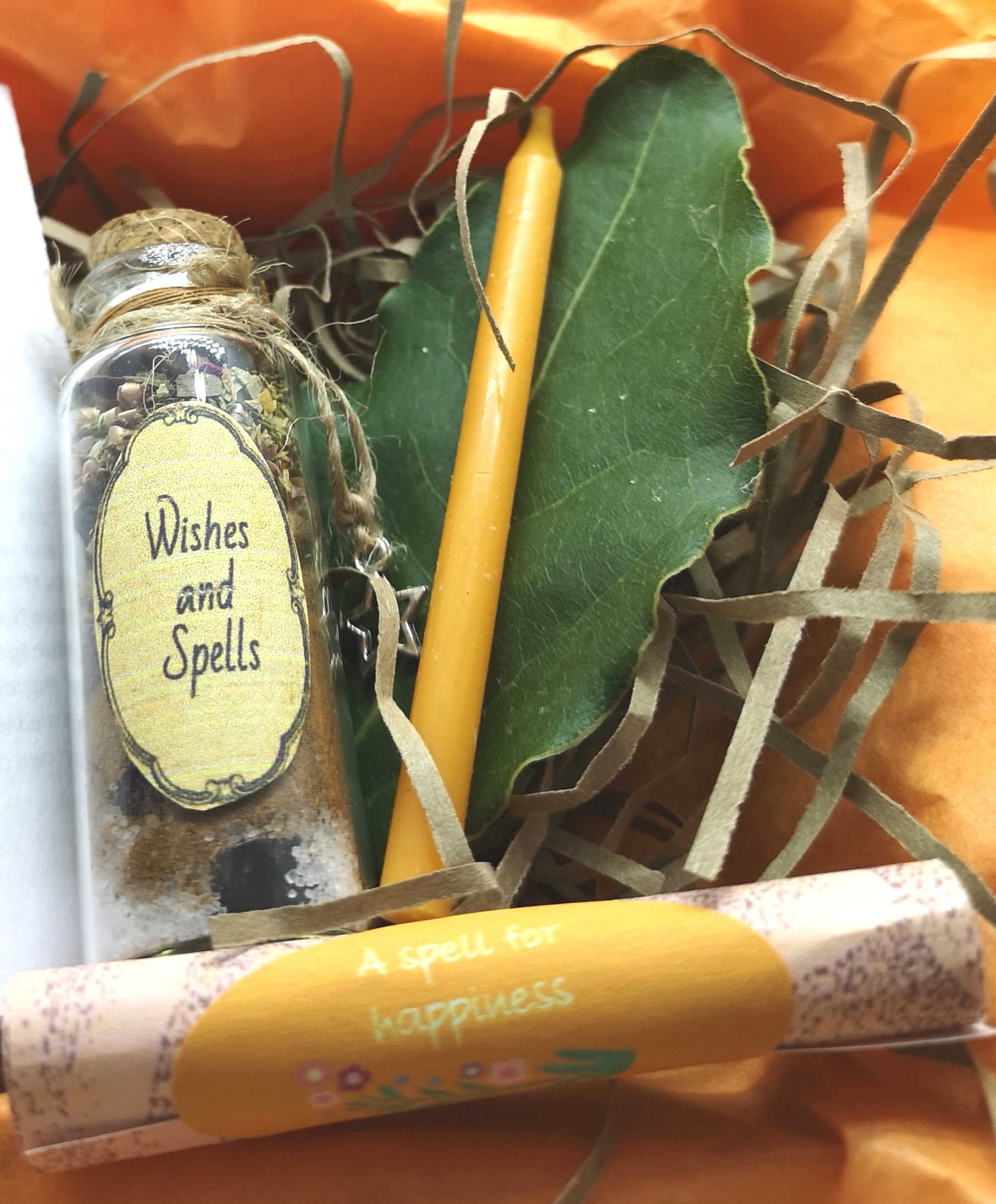 Packed full of magickal herbs, crystals, salts, peppercorns and essential oil all known for their positive vibes and protective properties, this little spell jar is for you to use as a talisman to attract joyful energy. Adorned with a tiny charm and wrapped in a bay leaf on which to write your wish, this comes with a tiny scrolled spell poem and a full instruction booklet to help your magickal spell work to its best ability. Colour themed orange, the colour of happiness, the jar can be sealed after casting the spell with the tiny candle included.